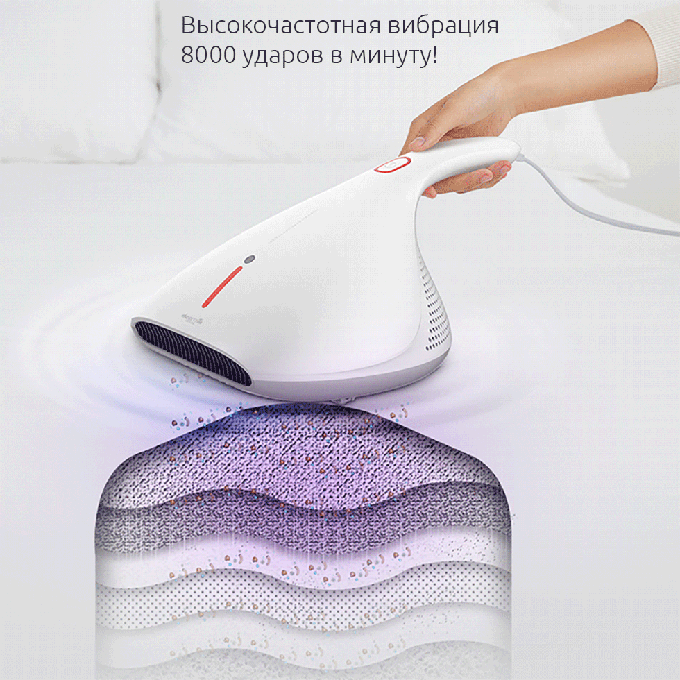 В новом пылесосе Deerma сочетаются 4 эффективных способа борьбы с пылевыми клещами: свет, жар, вибрация и всасывание. Комплексная защита включается всего одной кнопкой, быстро удаляя всех клещей из ткани.
