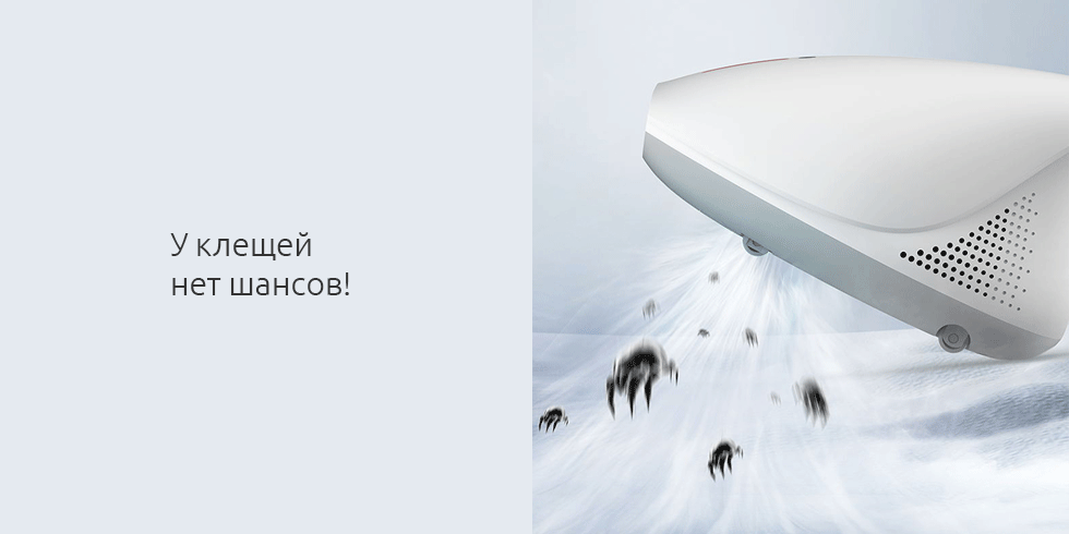 Когда вибрация отцепляет клеща от волокон ткани, он обязательно попробует убежать, однако сила всасывания пылесоса в 13000 Паскалей быстро схватит и отправит его в пылесборник вместе с обычной пылью, собранной с ткани.
